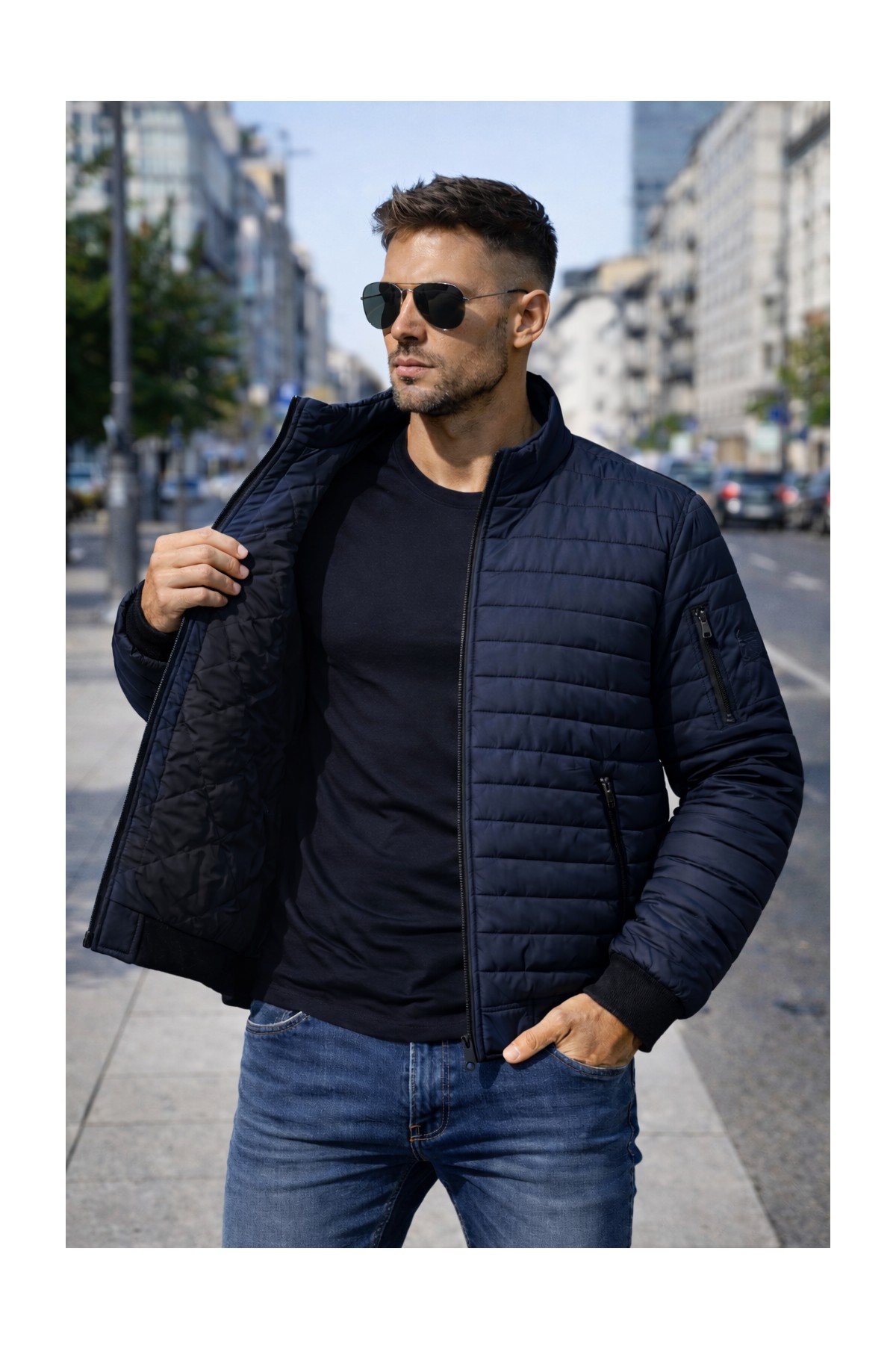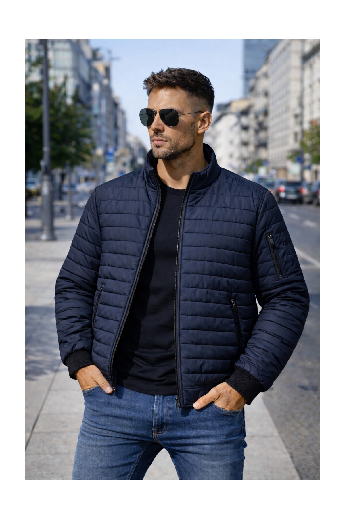 Kurtka przejściowa . Zapinana na zamek, po bokach dwie kieszenie.Lekką kurtkę przejściową dobierz do casualowych stylizacji.